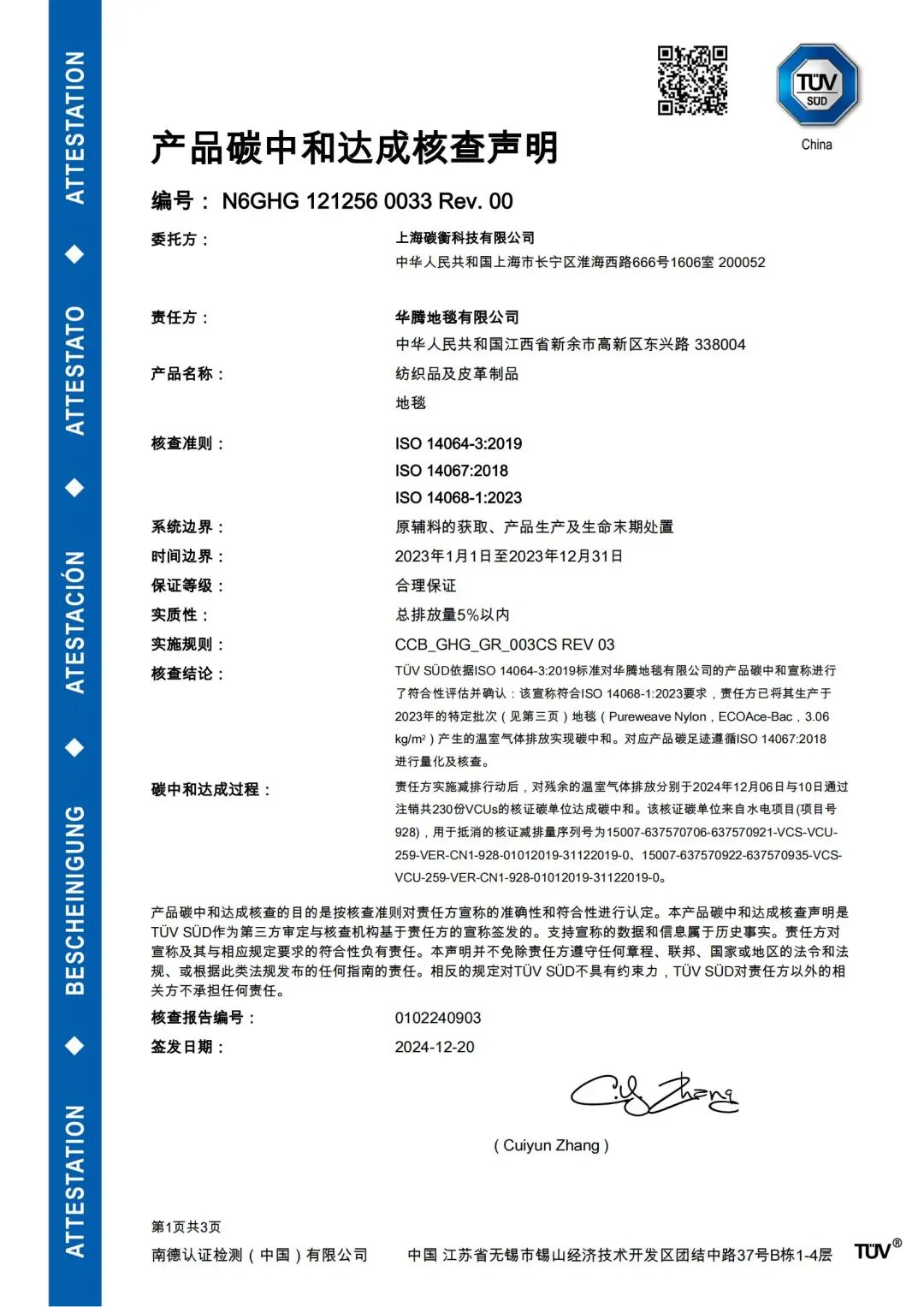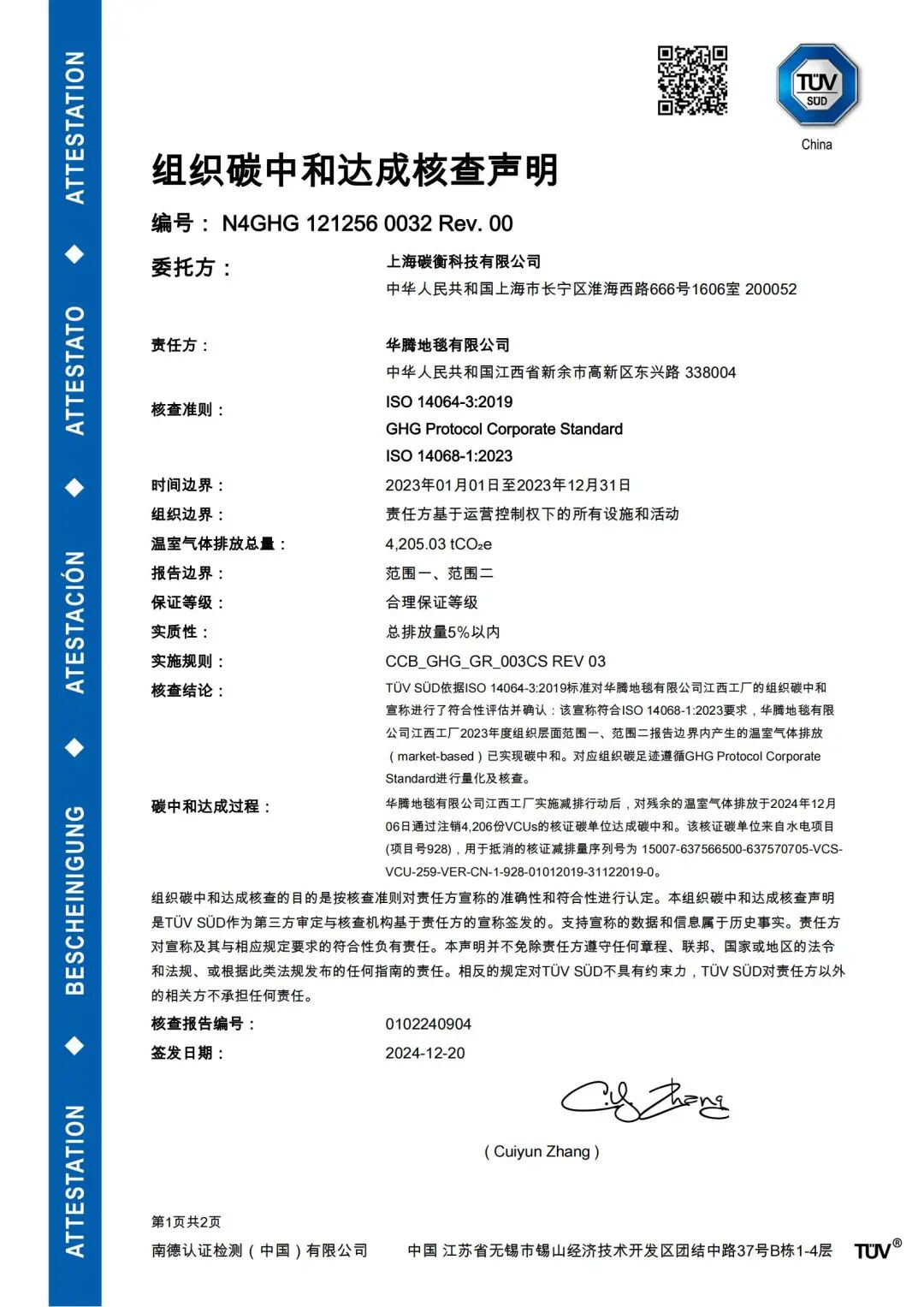 “作为一个有可持续发展观的企业,华腾需要在碳排放方面有一个客观、明确的认知,了解每个产品、每个过程的碳足迹,才能更好地管理碳排放,从而实现碳排放目标。我们通过选择可靠的碳核算服务机构和权威的第三方认证机构,使得我们的数据更具客观性和合规性”。